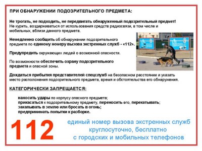 • Не трогайте, не передвигайте, не вскрывайте обнаруженный прдмет.